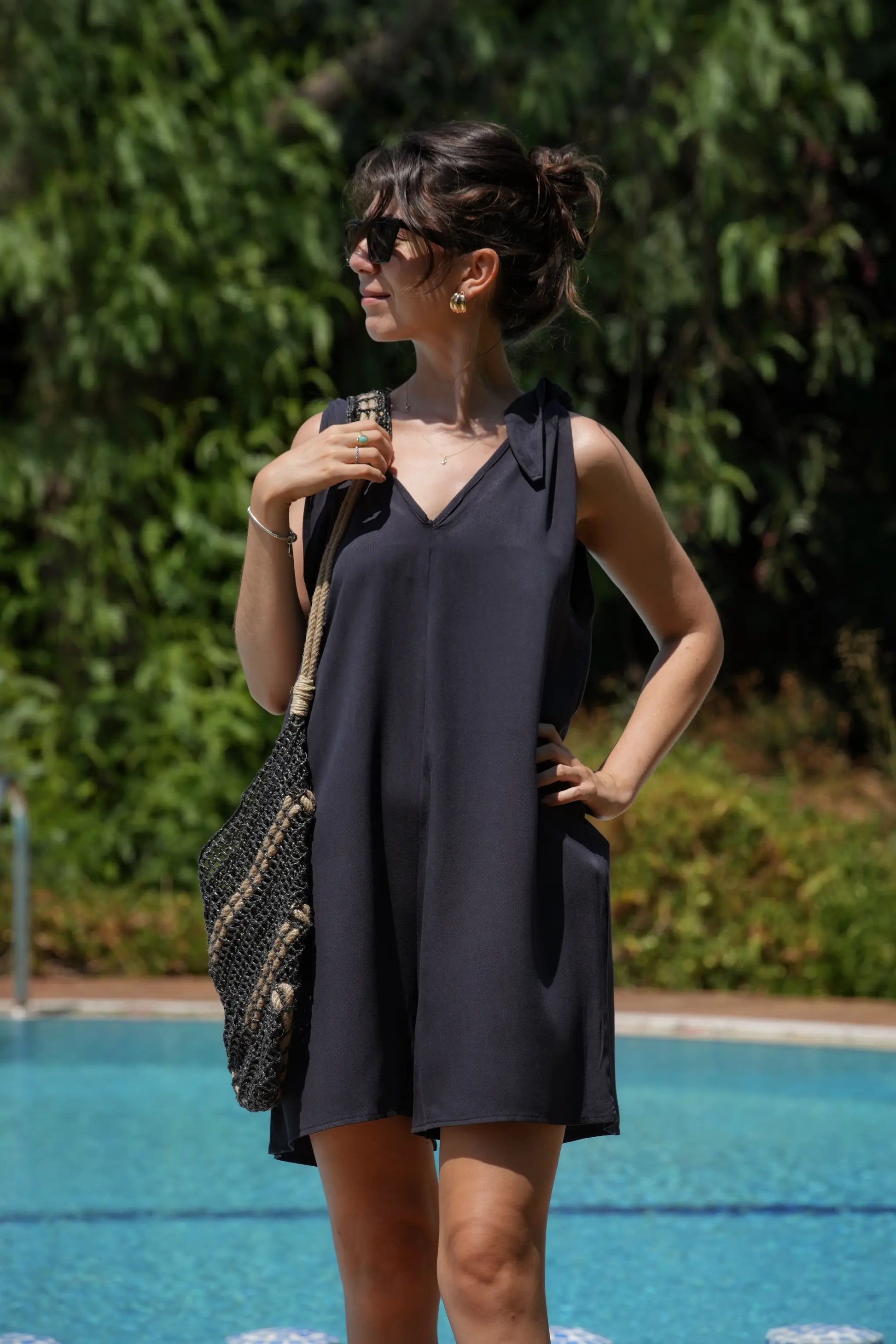Omuzlardan bağlamalı, kısa boy, arka ve ön V yaka modal kumaş tulum