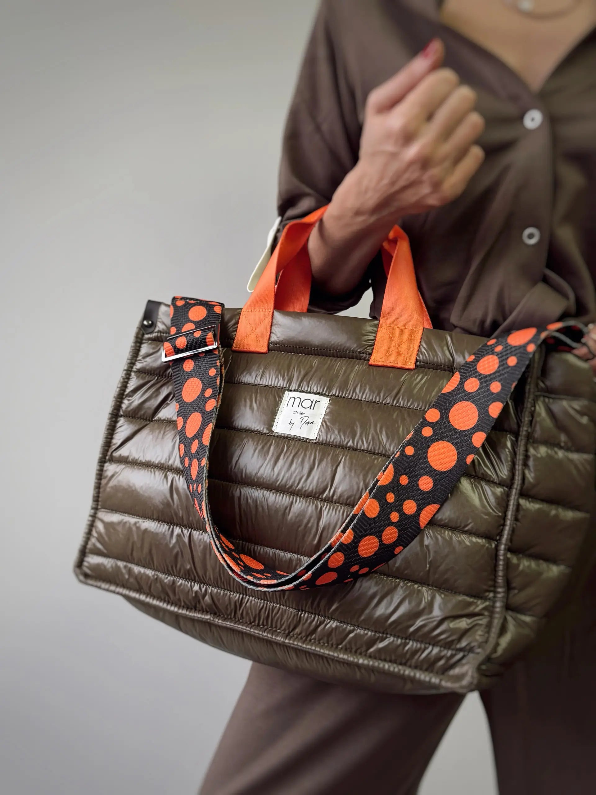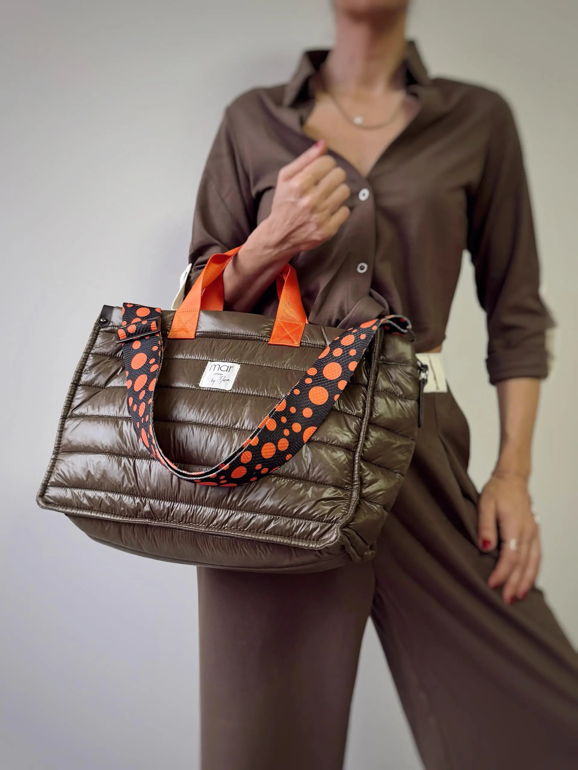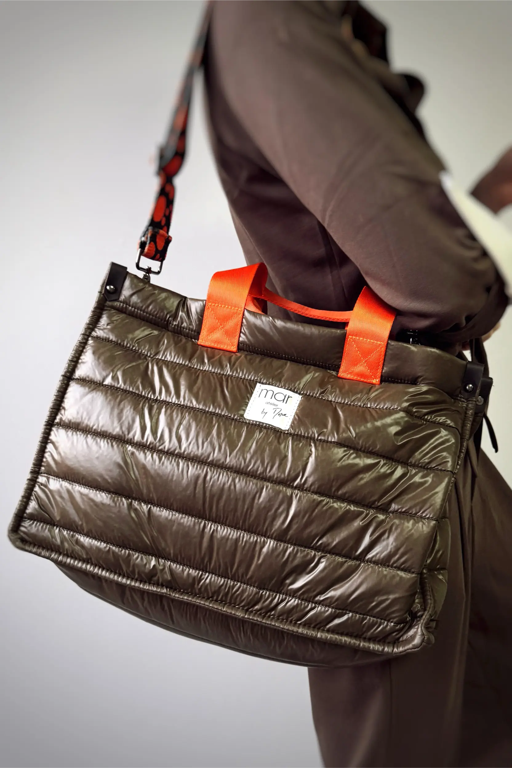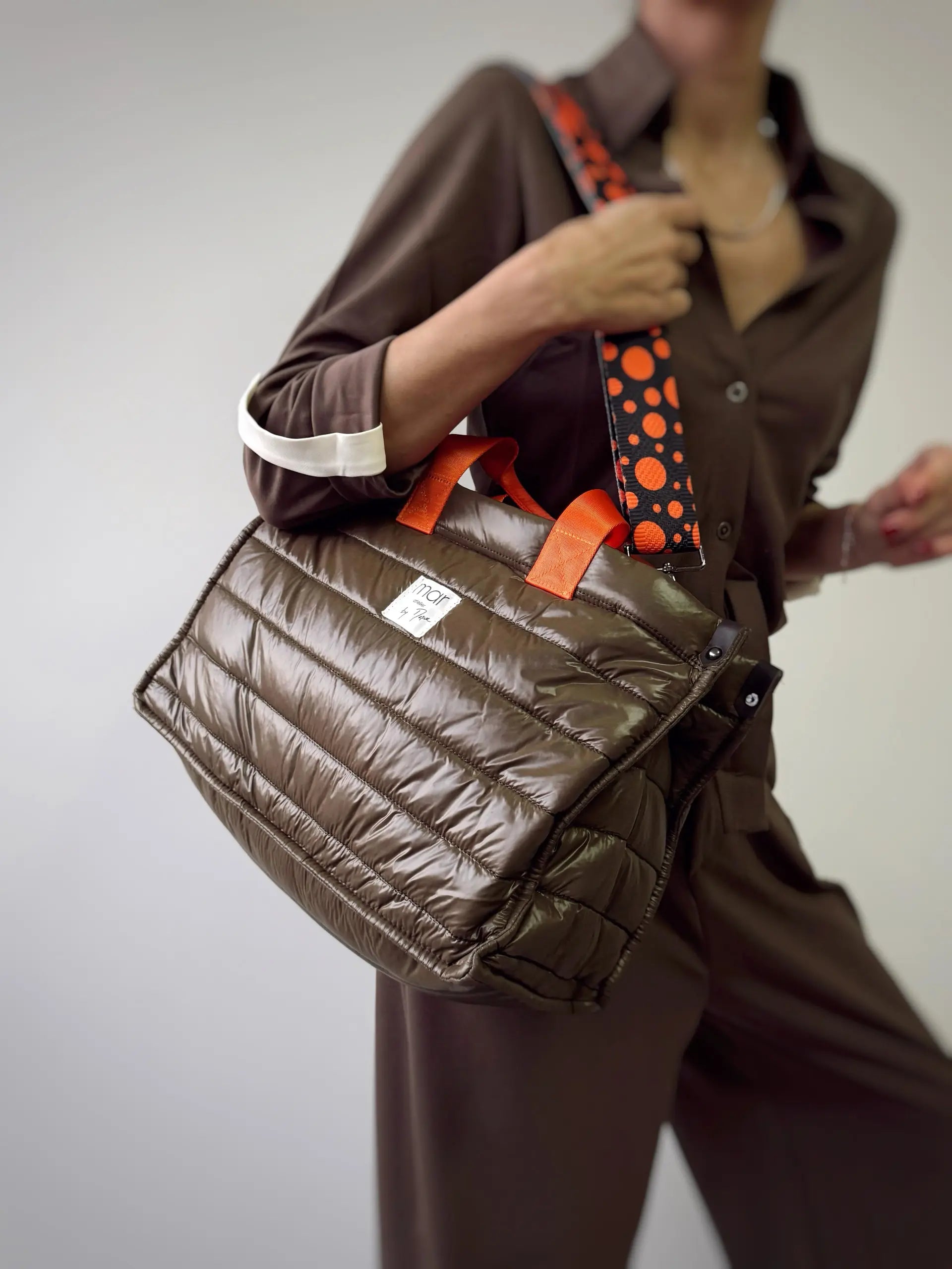 Paraþüt kumaþ, arasý elyaf dolgulu, aðzý fermuarlý, deri detaylý, renkli kolon saplý çanta