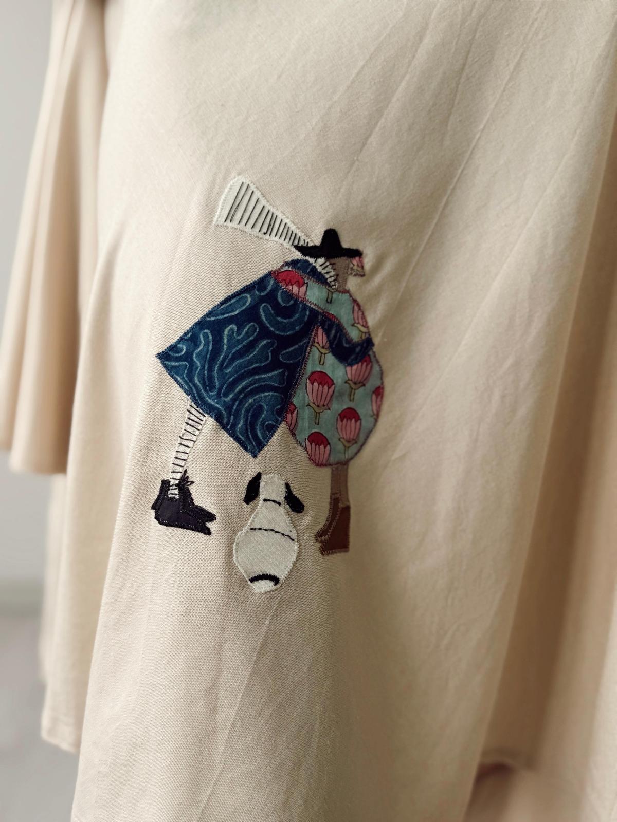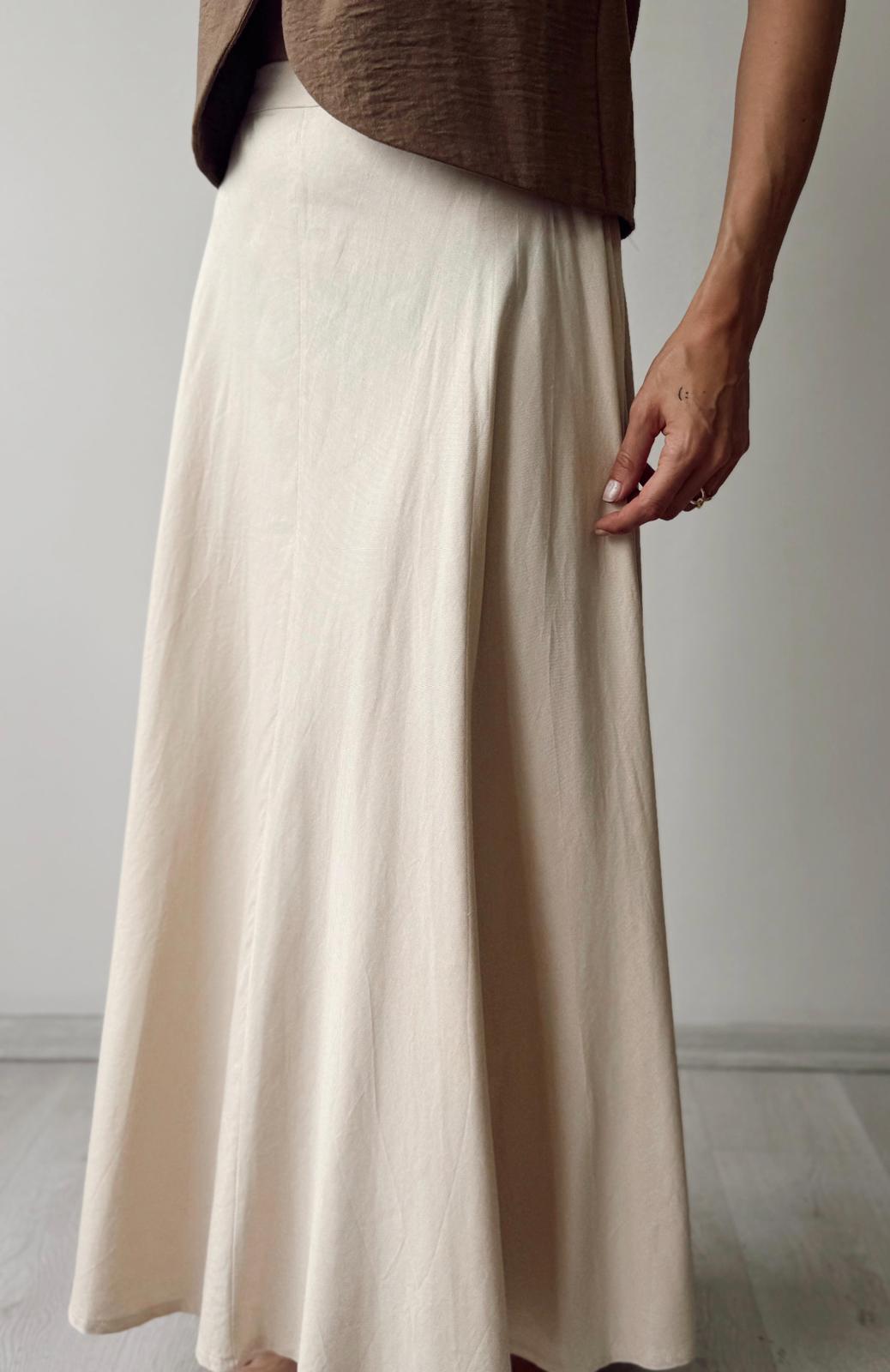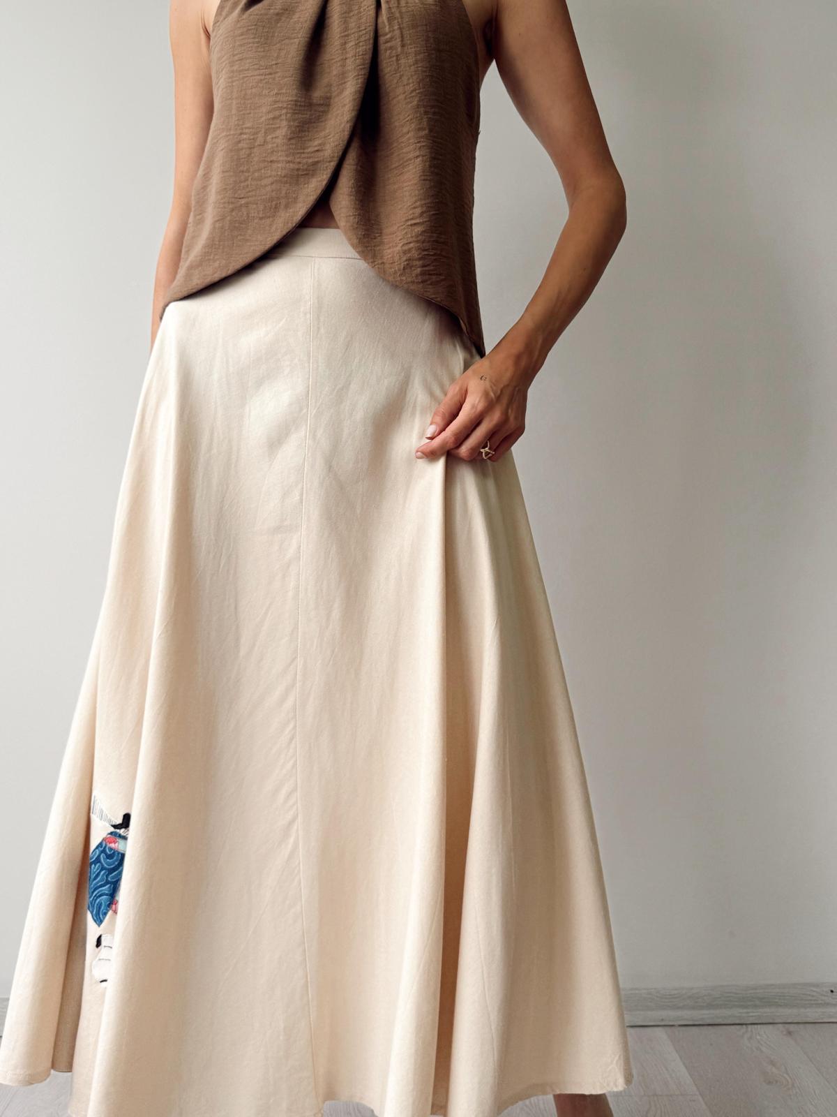Viskon keten, etek ucu aplike nakış detaylı, kloş etek