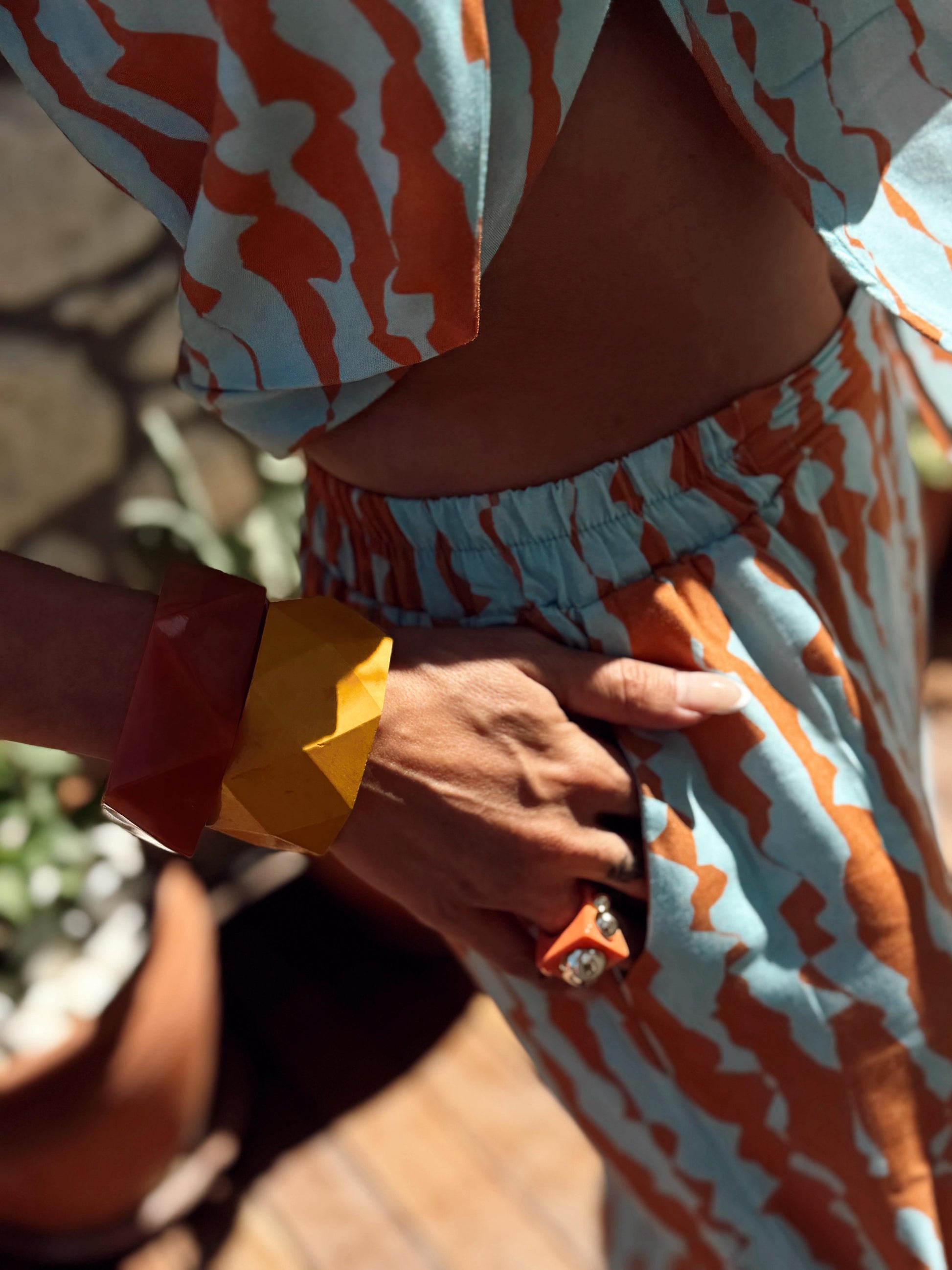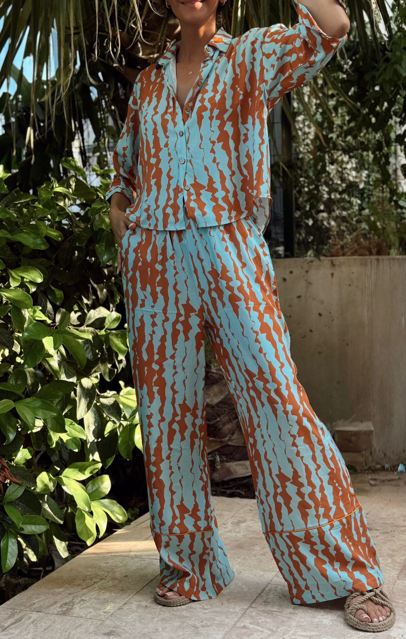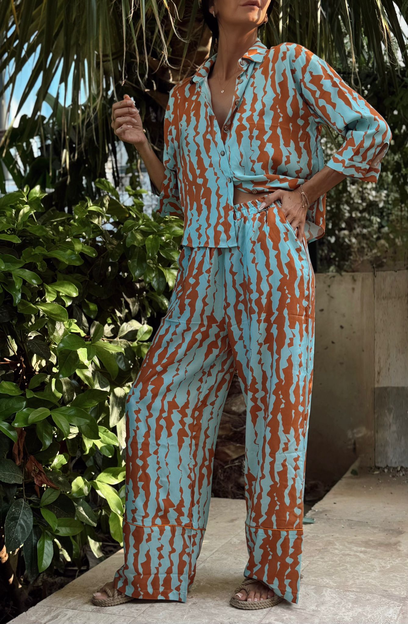 Yazın enerjisini yansıtan Mon Arinna tasarımı olan 2 parçalı takım, hem konforlu hem de stil sahibi görünmek isteyenler için tasarlandı.