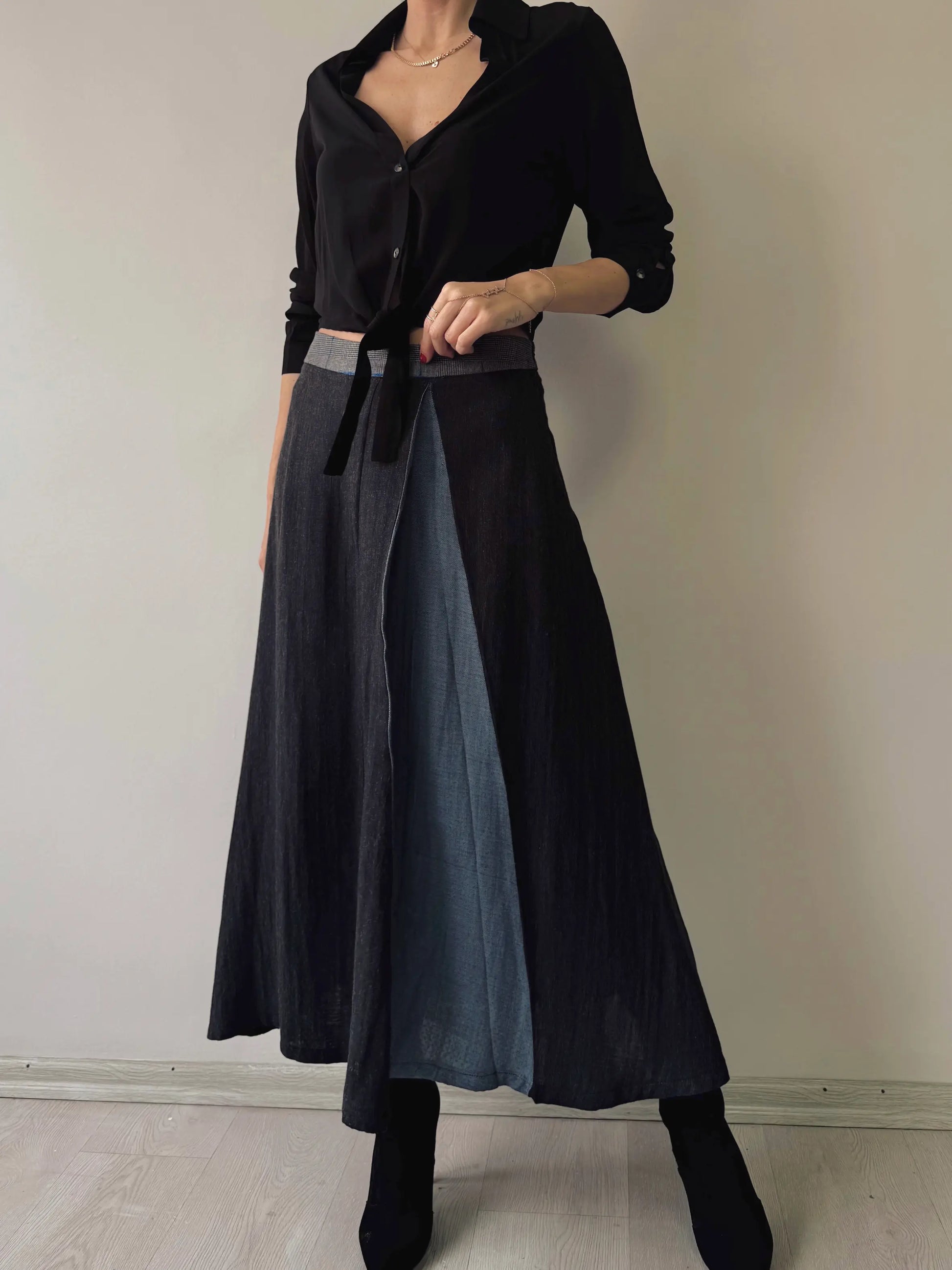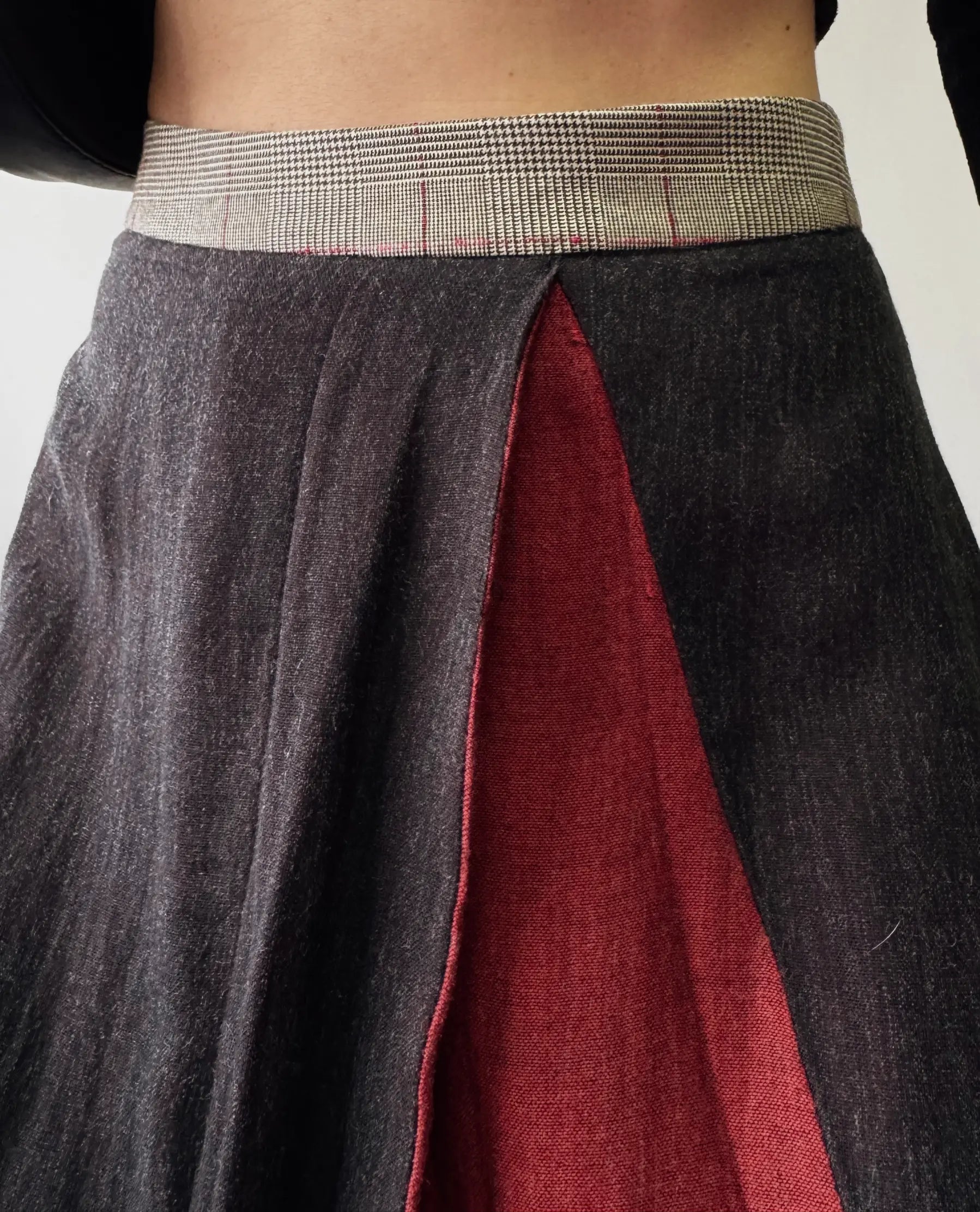 Bel detaylı ekose pamuklu kumaş, iki renkli, müslin kumaş özelliğiyle hafif, yumuşak, nefes alabilen kumaş.