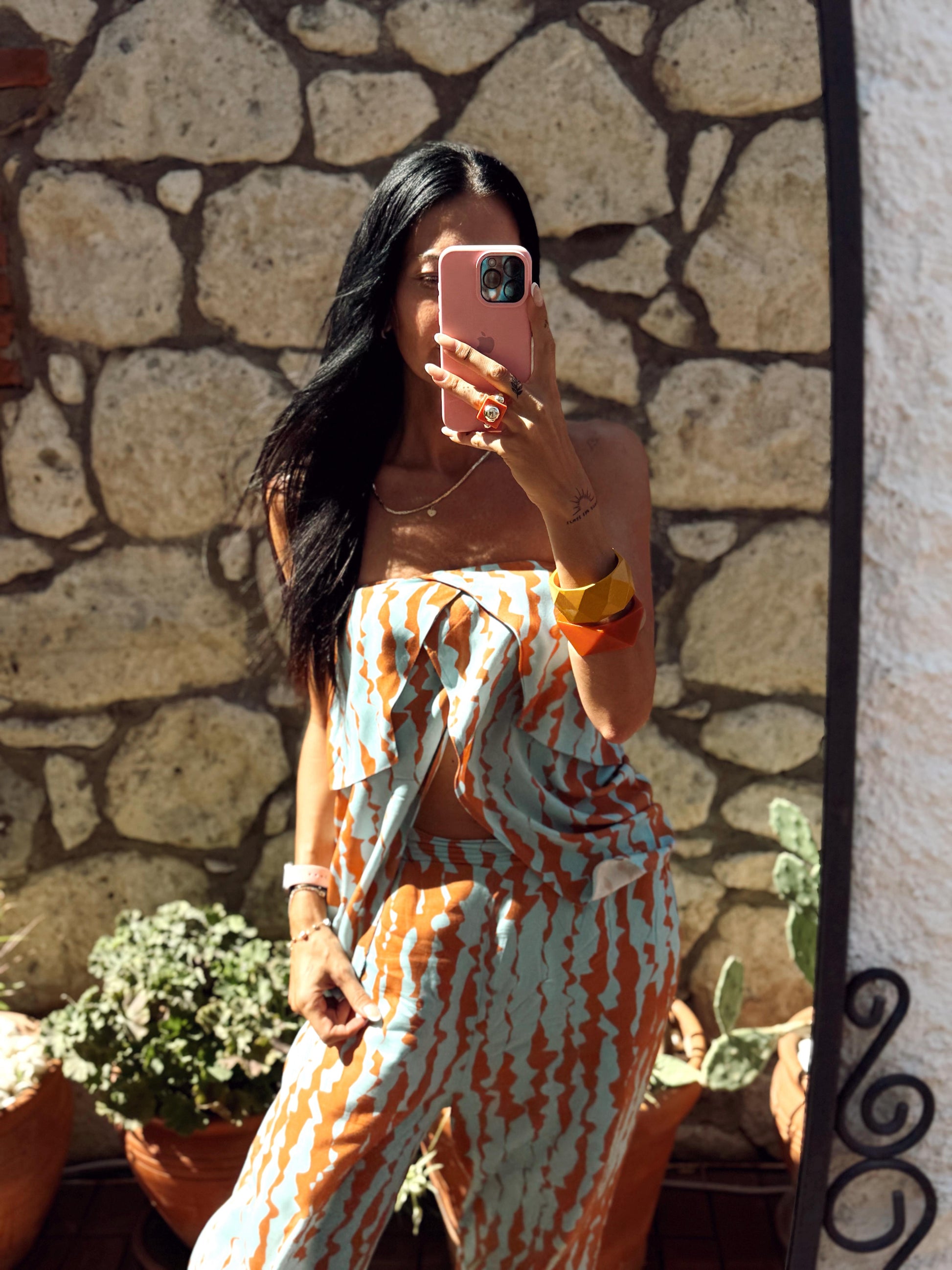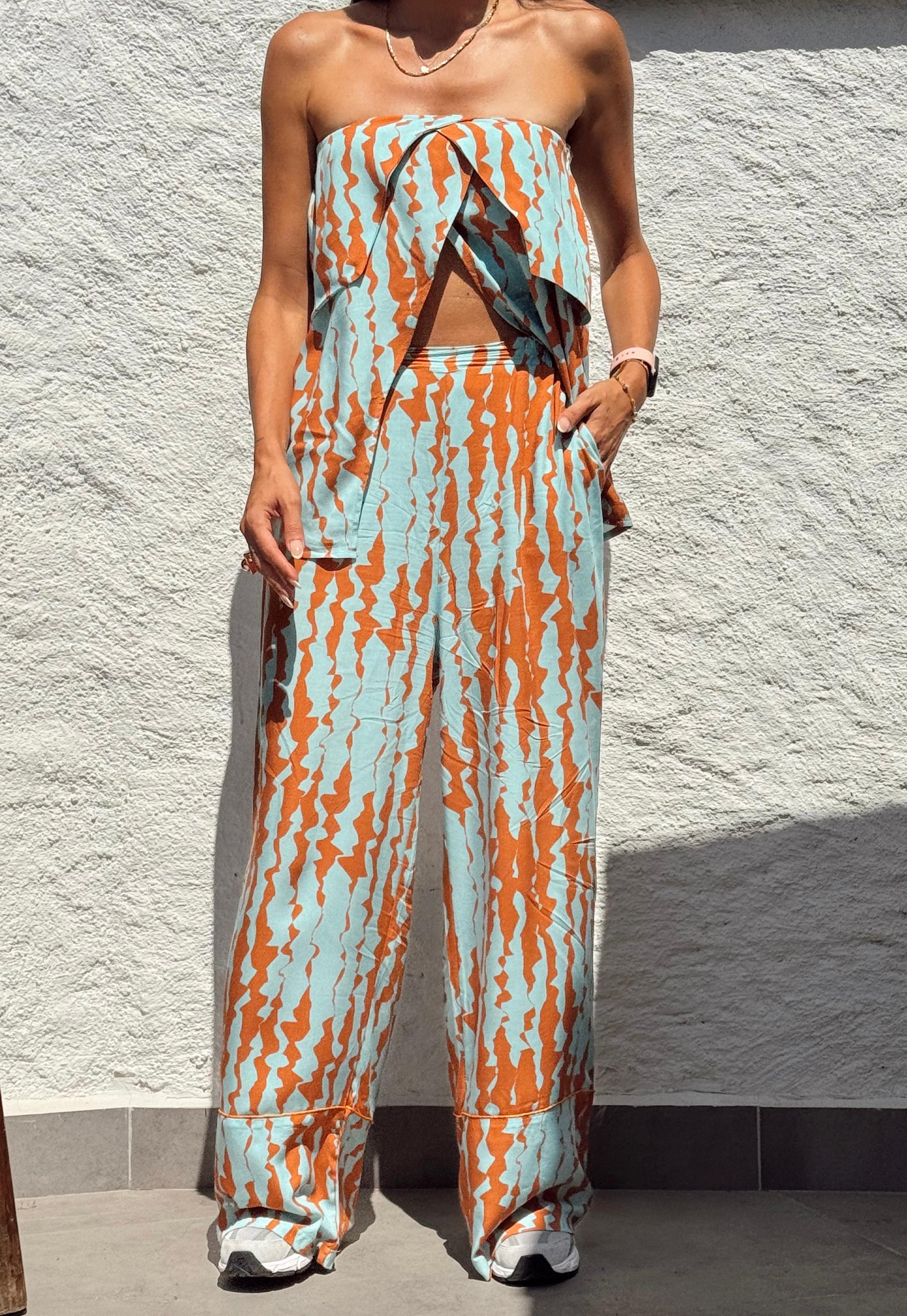 Yazın enerjisini yansıtan Mon Arinna tasarımı olan 2 parçalı takım, hem konforlu hem de stil sahibi görünmek isteyenler için tasarlandı.