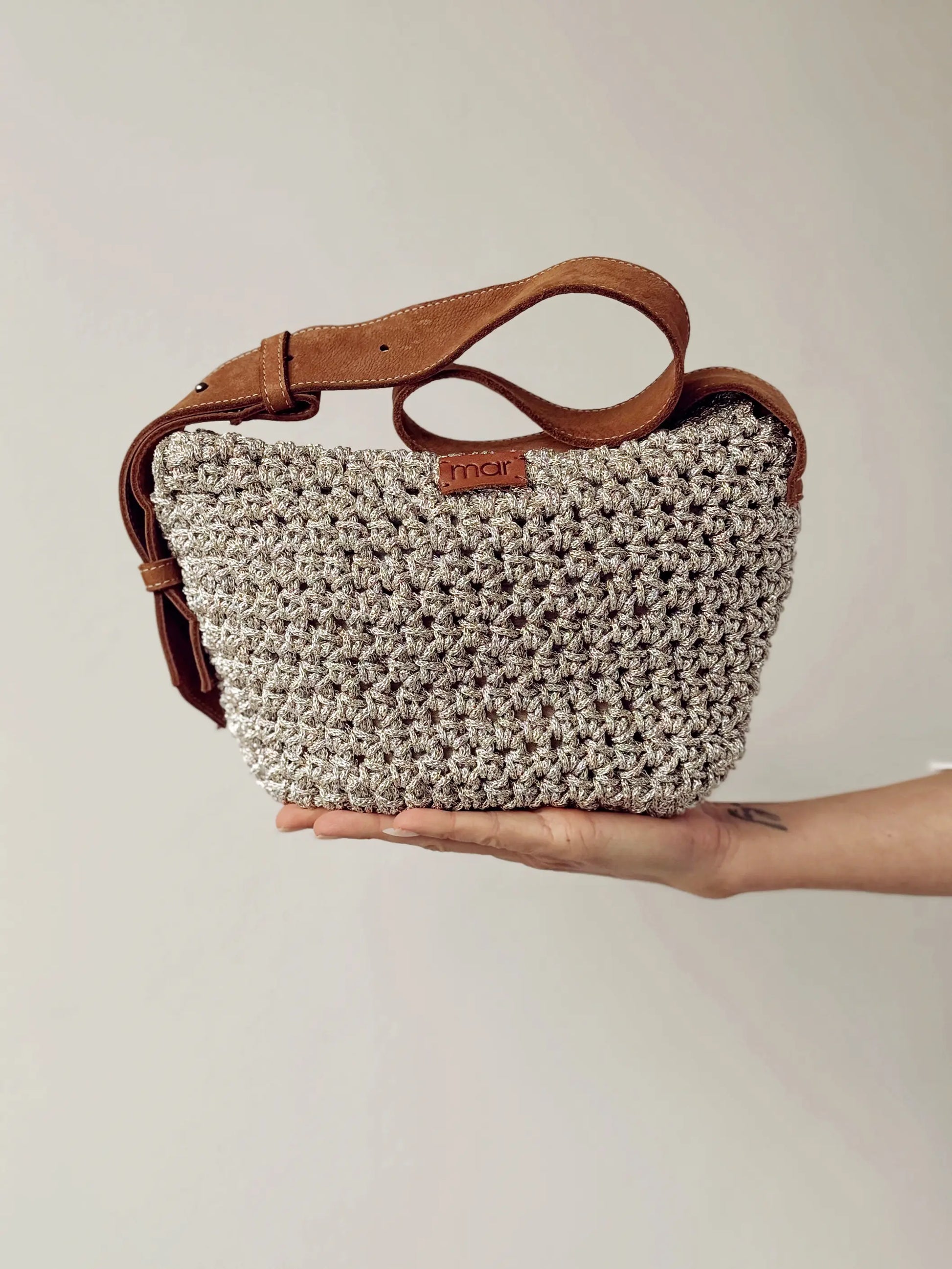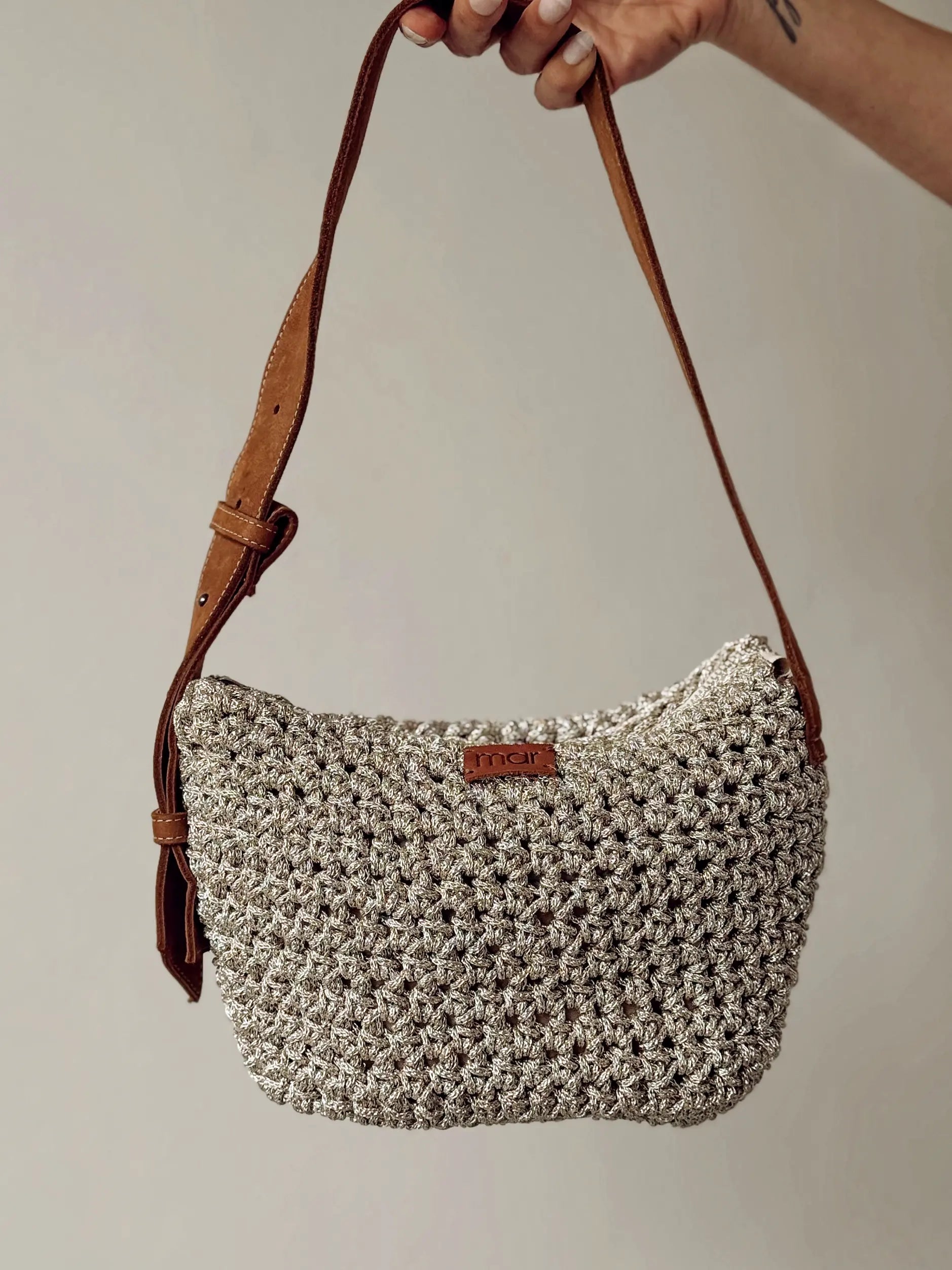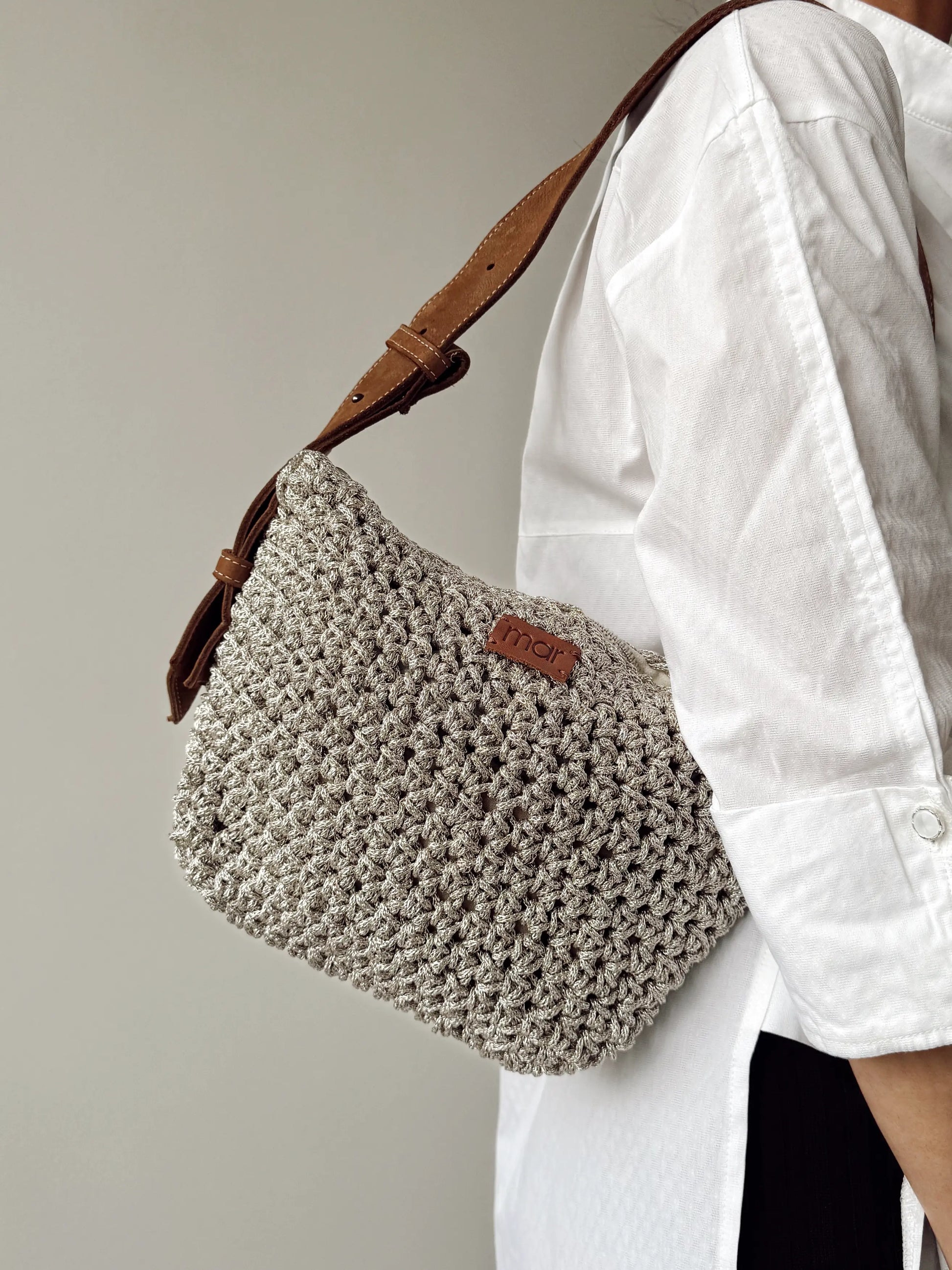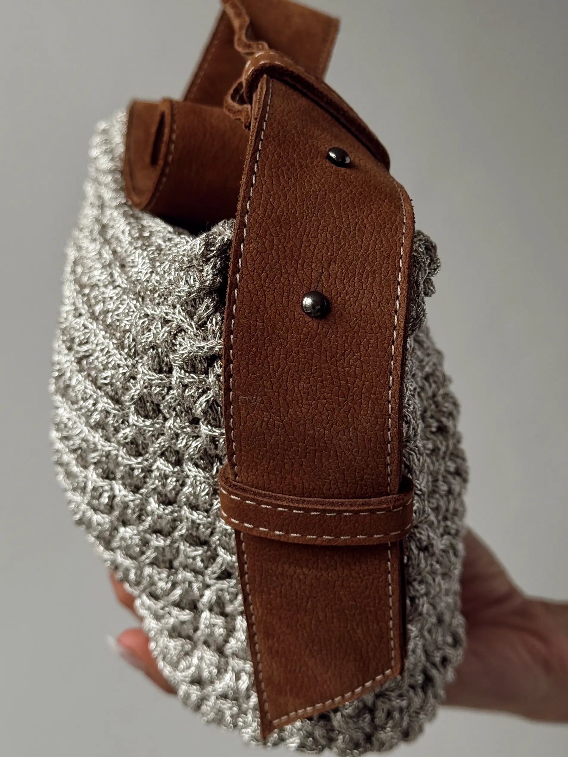 Çelik ip ile elde örülmüþ, camel renk ithal süet aský detaylý çanta