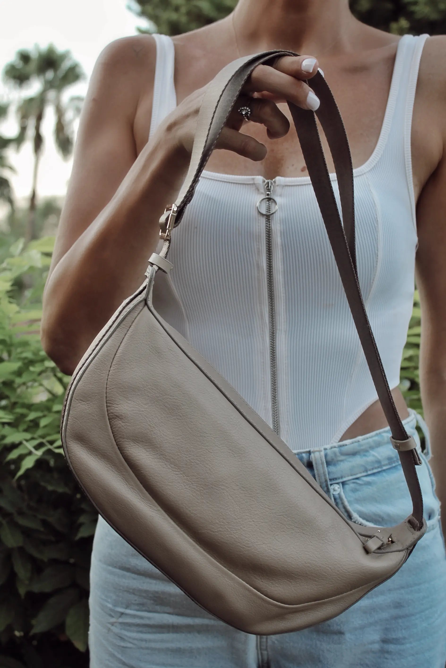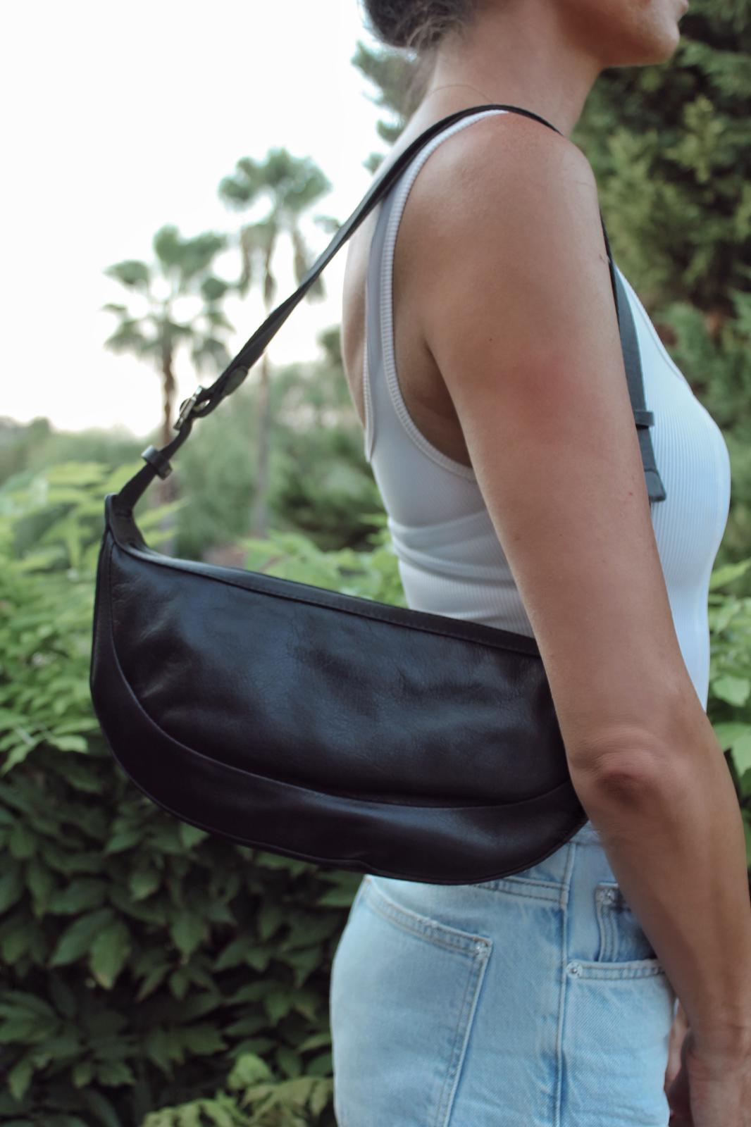 Orjinal deri, ayarlanabilen kolon saplı, iç cep detaylı, fermuarlı omuz çantası