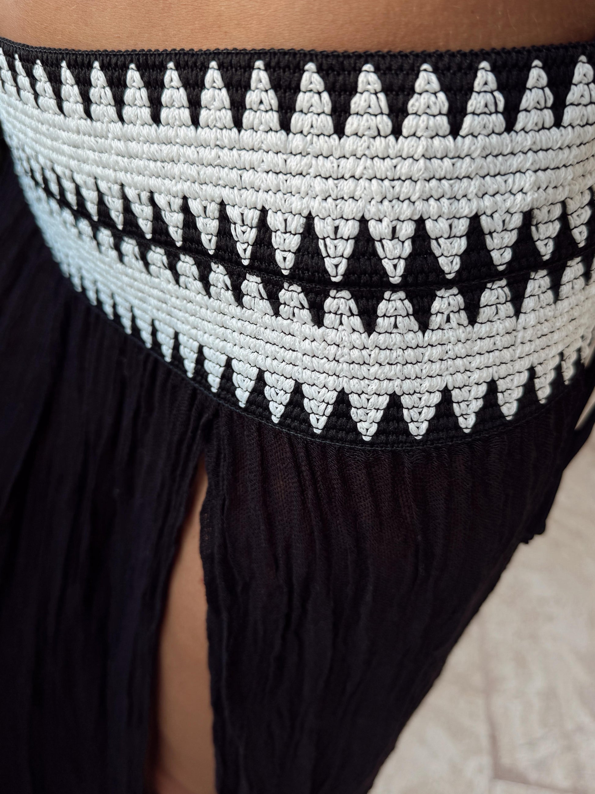Zarafeti ve özgünlüğü bir araya getiren bu özel tasarım etek, Mon Arinna’nın sade ama şık çizgisini yansıtıyor. İnce siyah-beyaz dokuma faralya bürümcük kumaştan üretilen model, bel lastikli yapısıyla gün boyu konfor sunarken özgün dokusuyla stilinize farklı bir hava katıyor.